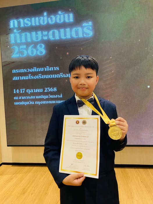 ได้รับรางวัลเหรียญทอง ประเภทเปียโน รุ่นอายุ ๑๐ - ๑๒ ปี