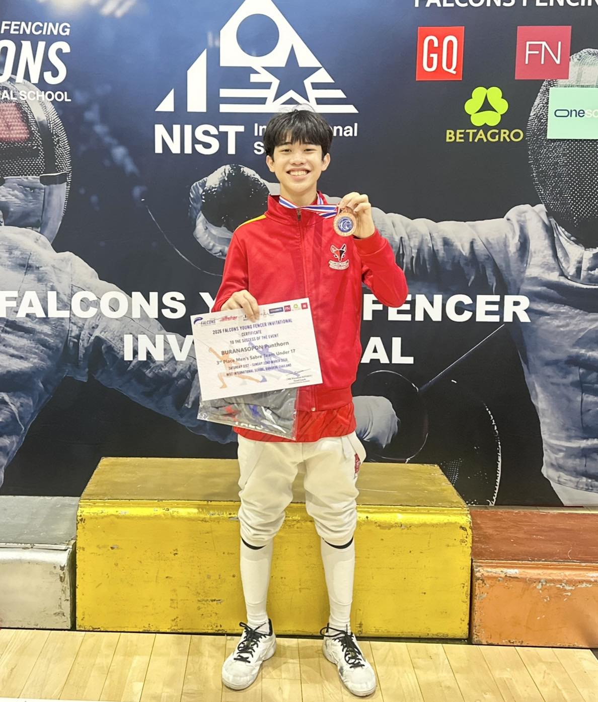 ขอแสดงความยินดีแก่เด็กชายปันธร บูรณะโสภณ ม.๓/๑ ได้รับเหรียญทองแดง จากการแข่งขันกีฬาฟันดาบสากล รายการ 2026 Falcons Young Fencer Invitational